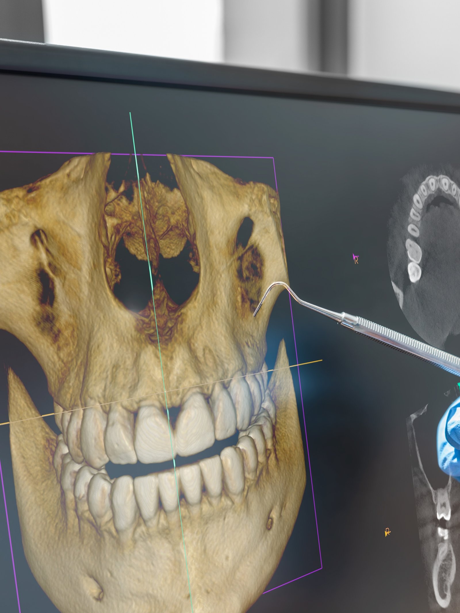 A pano is 2D and can hide important details. CBCT is 3D, allowing precise measurements and clear views of nerves, roots, sinuses, and bone.